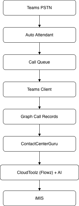 ContactCenterGuru integrates Microsoft Teams Phone with the iMIS Staff Site, providing agents with caller identification, AI call summaries, call transcripts, and automated follow-up workflows — all inside iMIS.