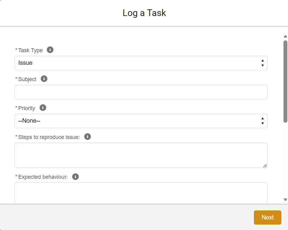Fill out the task information and press Next to add files or images: