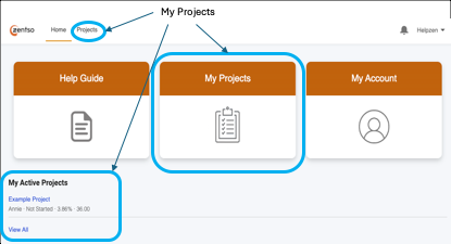 My Projects can be accessed from the Home Page as well as the navigation bar: